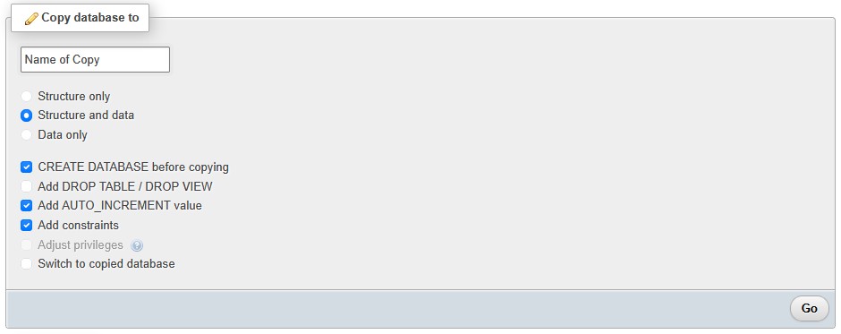 Note: An alternative is to Export the database. To use or restore it, the database can be Imported. These processes are menu options in phpMyAdmin.